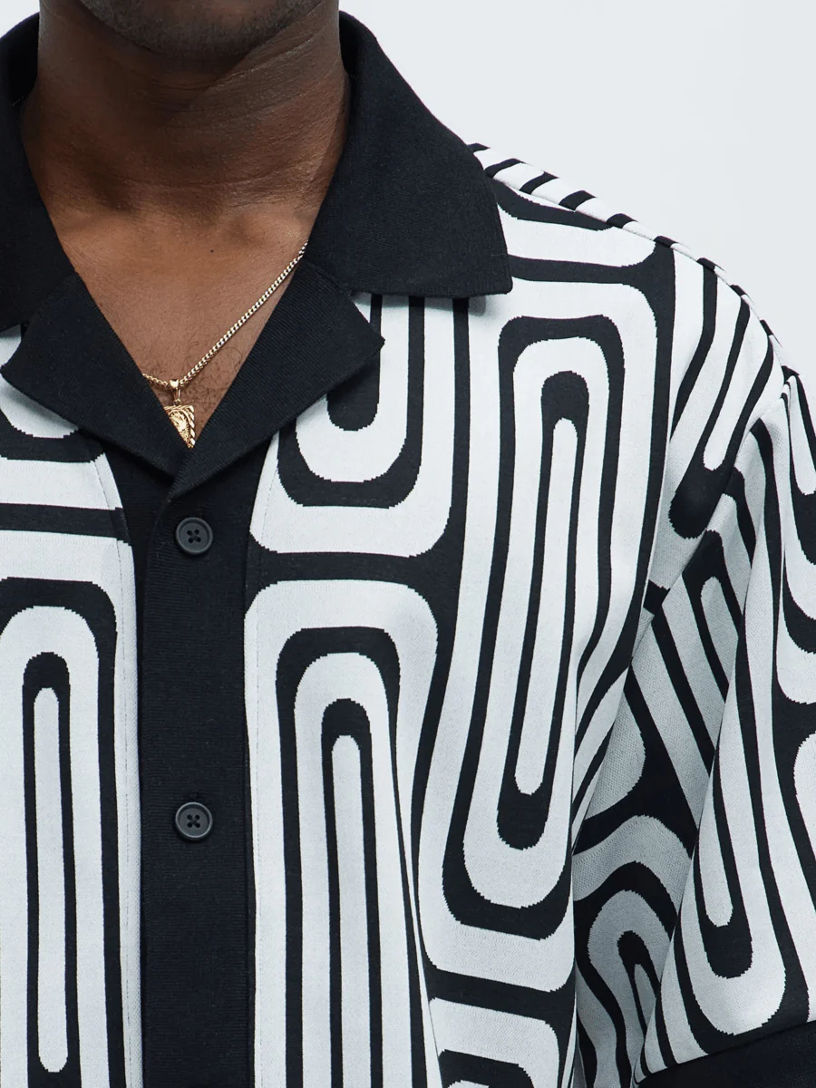 - Design: Hypnotic loop pattern wraps the entire set in a maze of monochrome geometry, bringing retro edge and modern energy together β graphic, crisp, and commanding